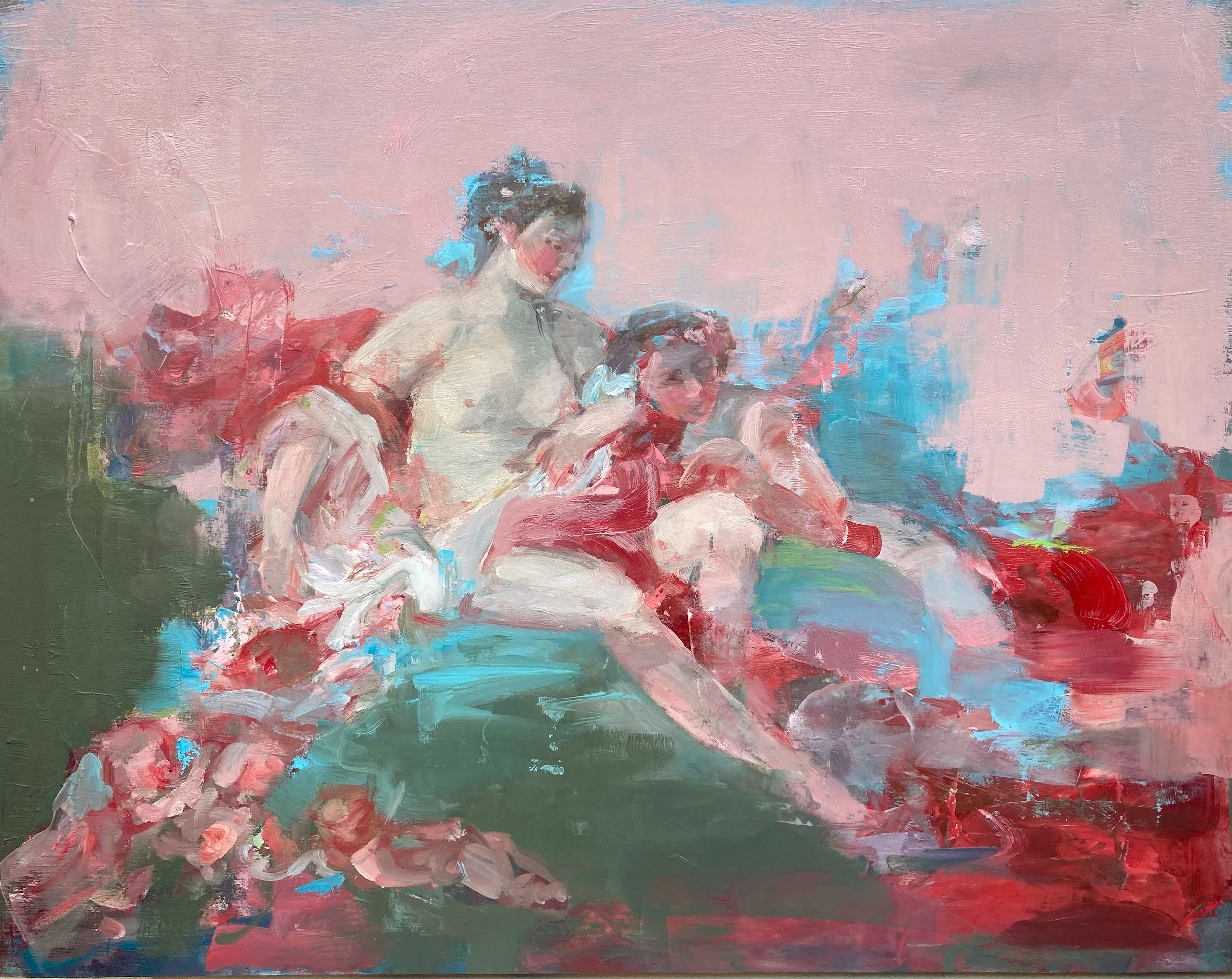 Am Amorous Pursuit (after Fragonard), 10' x 8", oil on wood