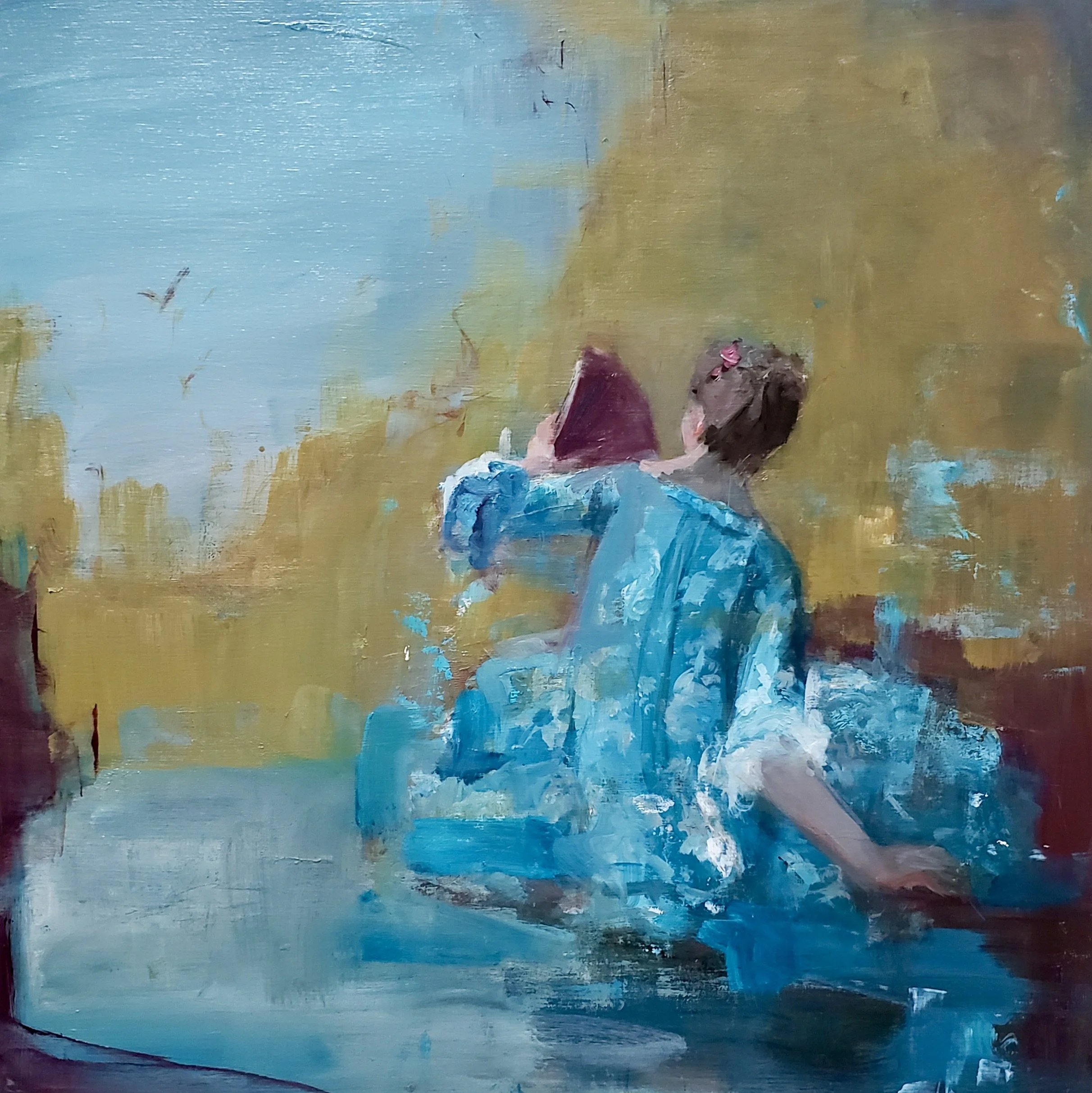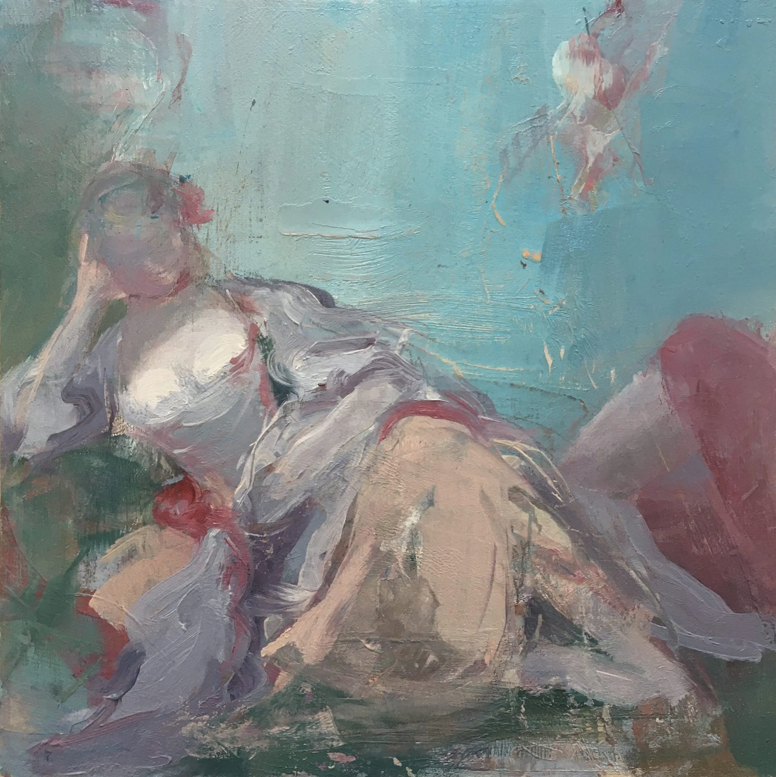 Fragonard in Blue and Violet, 8”x 8”, oil on wood