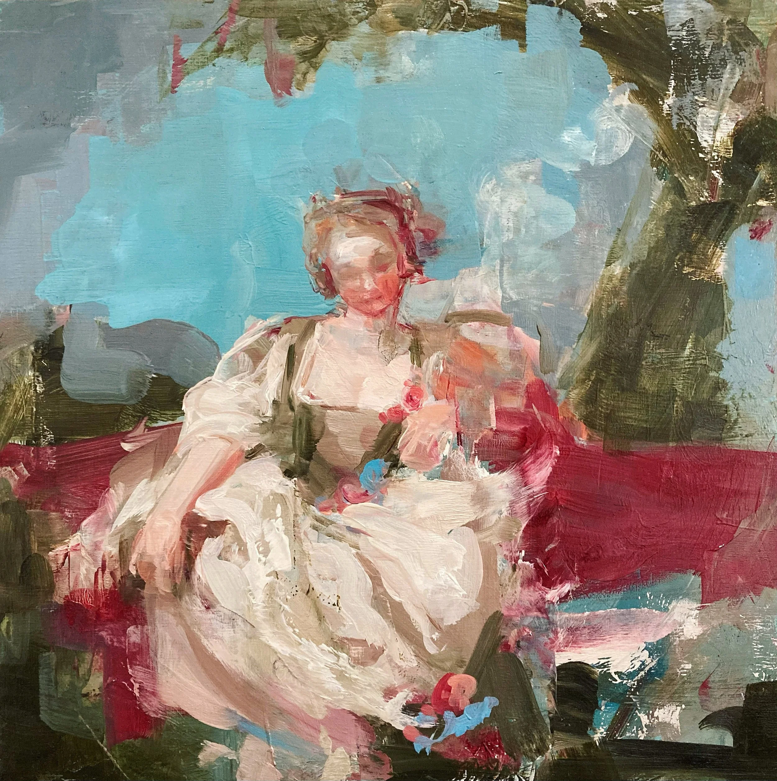 Music after Fragonard, 10” x 8”, oil on Masonite
